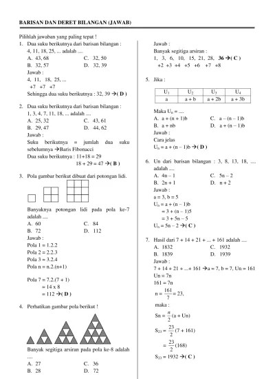 Apabila kodomainnya adalah himpunan bilangan real, maka terbentuklah barisan bilangan real. Bentuk penulisan dari barisan : Jadi, setiap urutan suku memiliki selisih atau beda yang sama. Rumus mencari jumlah n suku pertama adalah sn = 1/6 n ( n + 1 ) ( 2n + 1 ) dengan adanya penjelasan secara terperinci seperti berikut akan memudahkan anda untuk memahami dan mahir dalam mengerjakan semua soal matematika. Ditulis barisannya sejumlah berhingga suku awalnya.