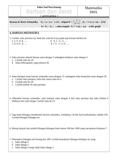 Jika suku kedua dikurangi 1, maka terbentuklah barisan geometri dengan . 20 tiga buah bilangan membentuk barisan aritmetika dengan beda tiga. Tiga buah bilangan membentuk barisan aritmetika dengan beda tiga. Tiga buah bilangan membentuk barisan aritmatika dengan beda positif. Tiga buah bilangan membentuk barisan aritmetika dengan beda tigaaritmatika :