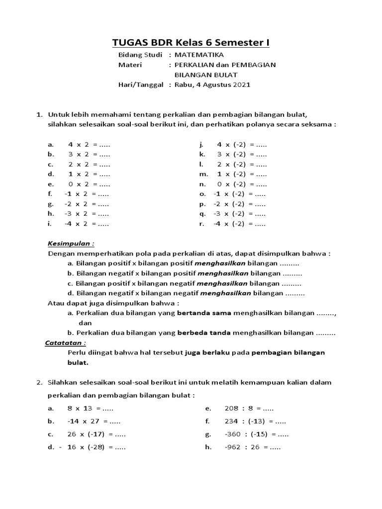Soal Bilangan Bulat Kelas 6 Pdf - #476. Top pdf soal matematika kelas 6 sd semester i ulangan bab 1 bilangan bulat dikompilasi oleh 123dok.com. Untuk materi matematika kelas 6 pada semester 1 kurikulum 2013, . Download latihan soal ulangan atau penilaian matematika kelas 6 materi pokok operasi hitung bilangan bulat. Anda juga bisa mengubah file pdf ke word secara offline dengan menggunakan program. 18 + 397 = ….